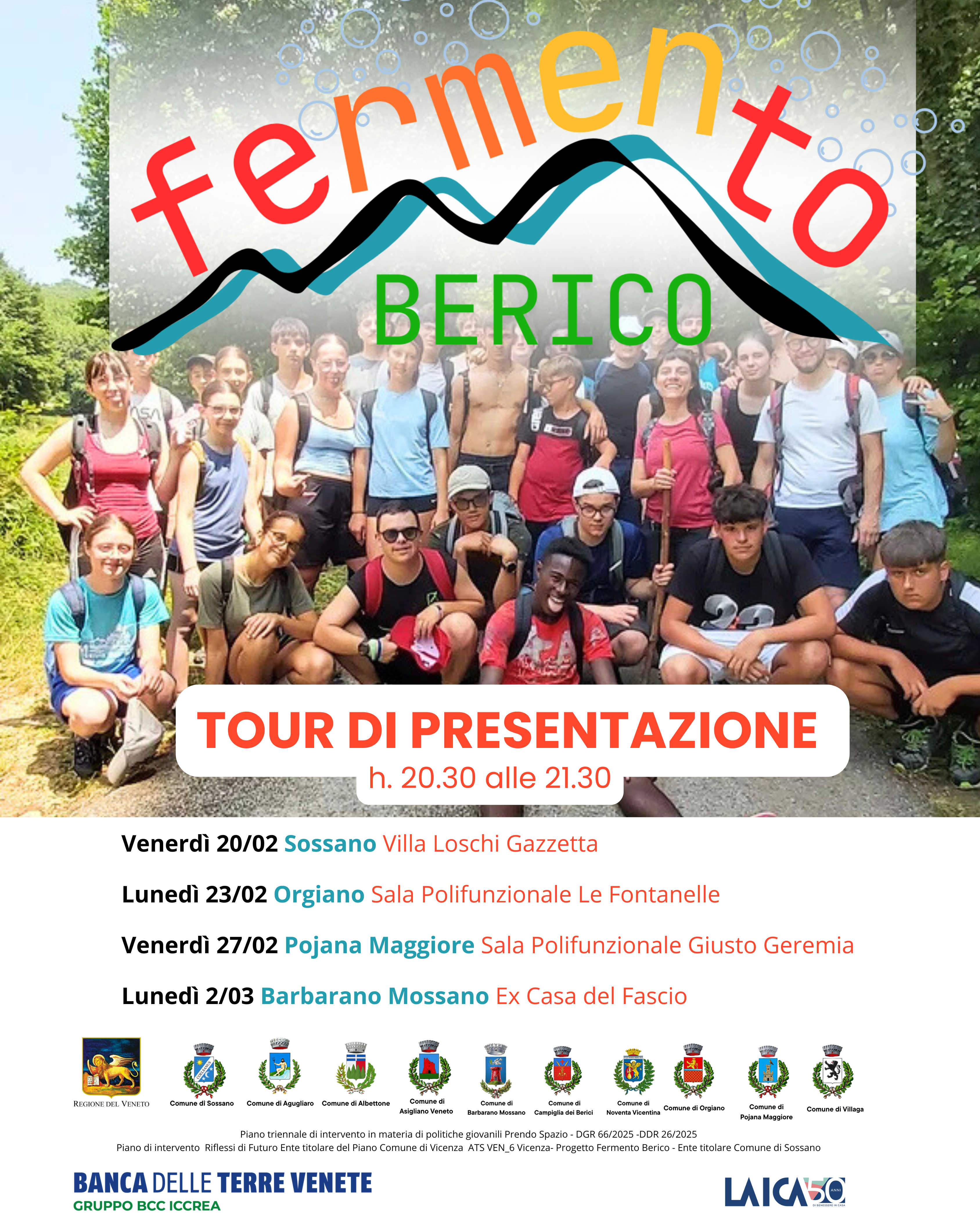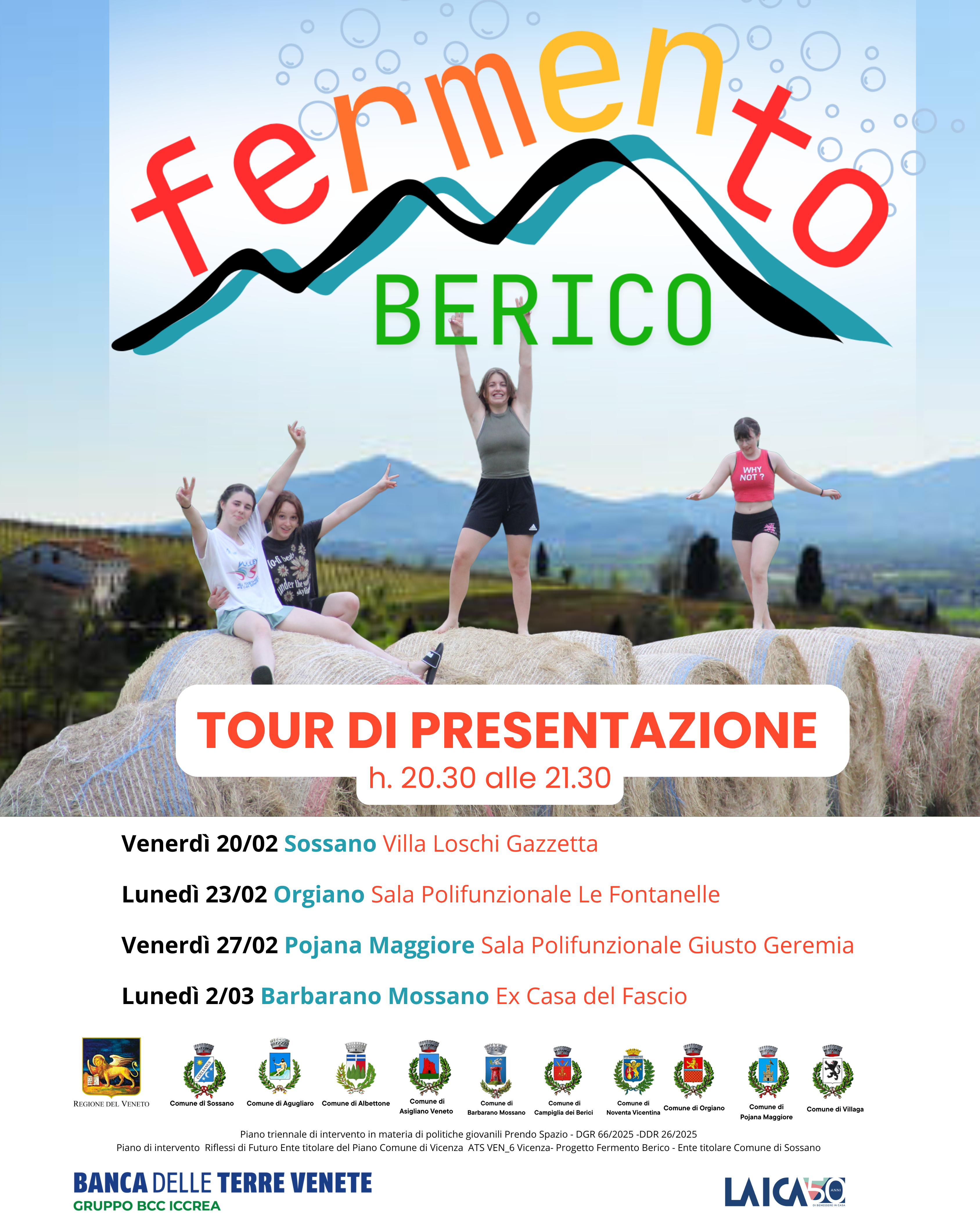 Il Comune di Sossano, in collaborazione con i Comuni di Asigliano Veneto, Agugliaro, Albettone, Barbarano Mossano, Campiglia dei Berici, Noventa Vicentina, Orgiano, Pojana Maggiore e Villaga, annuncia l’avvio di "Fermento Berico".