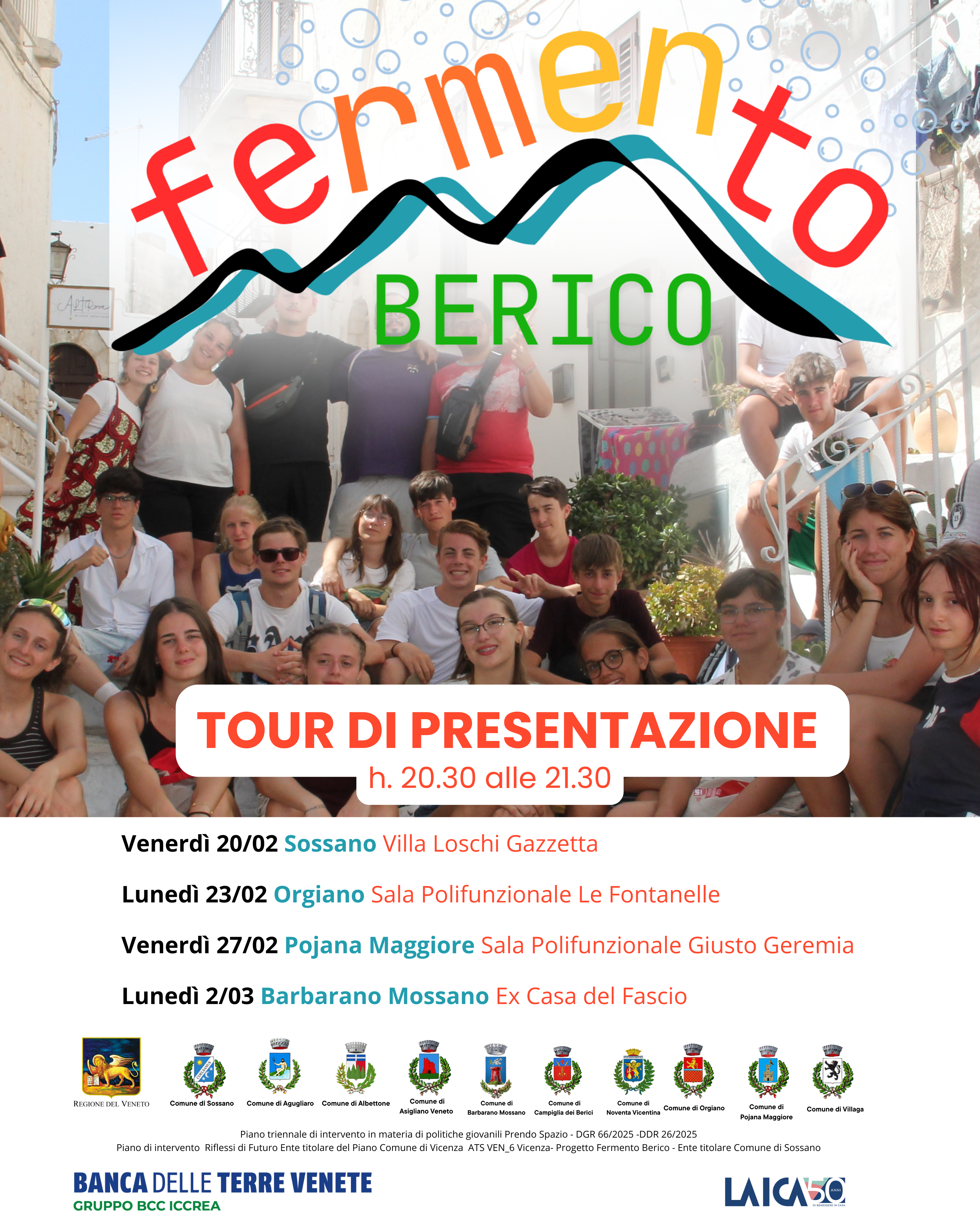 Nasce “Fermento Berico”: i 10 Comuni dell’Area Berica fanno squadra per una nuova stagione di politiche giovanili.